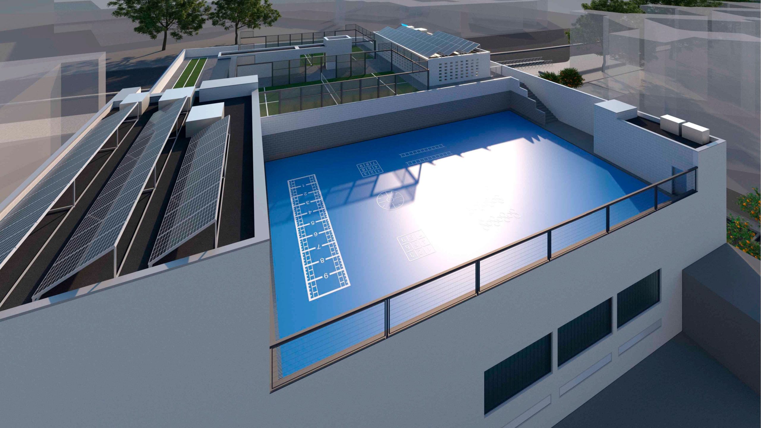 Ejecución de Centro Deportivo con 5 plantas de sótano, piscina y pistas deportivas.